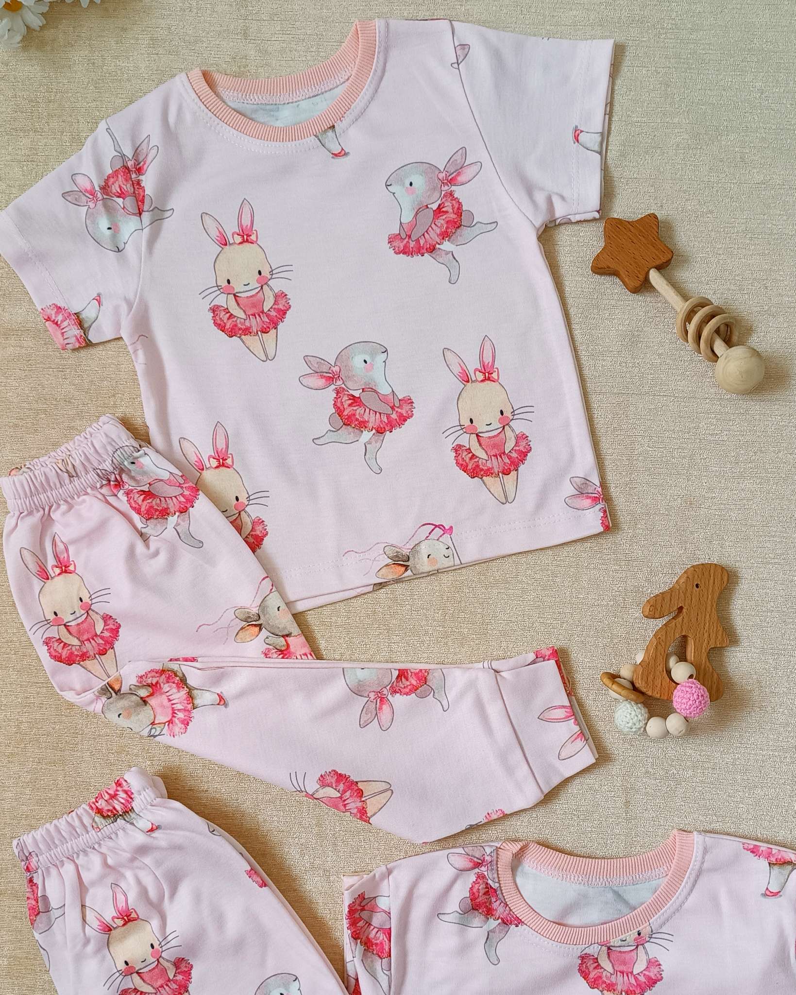 ست سه تکه نخ پنبه نوزادی نوزادو کودک مدل گل ربان و پر۷۷۲٬۰۰۰ تومان