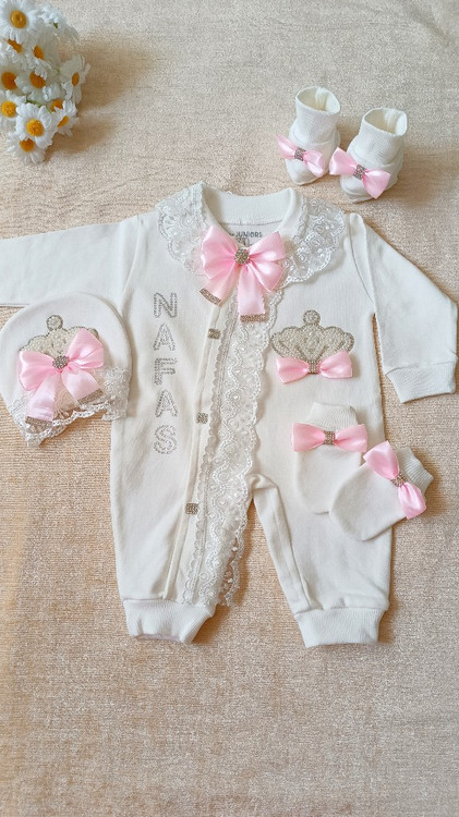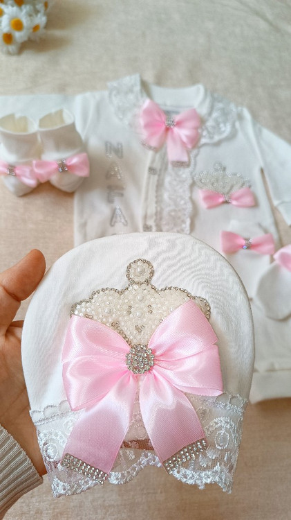 سه تکه نخ پنبه نوزاد و کودک مدل تاج مرواریدی(با اقساط ۴ ماهه))