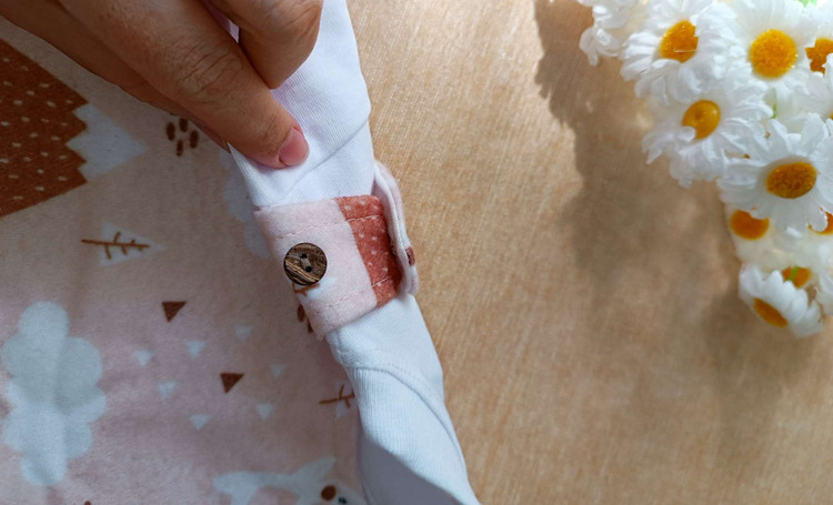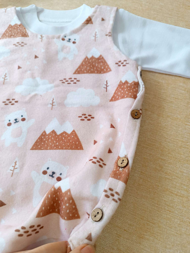 مزیت این لباس دکمه بغل بیلر که تا پایین لباس هست و تنپوش راحتی برای کودک داره 👌