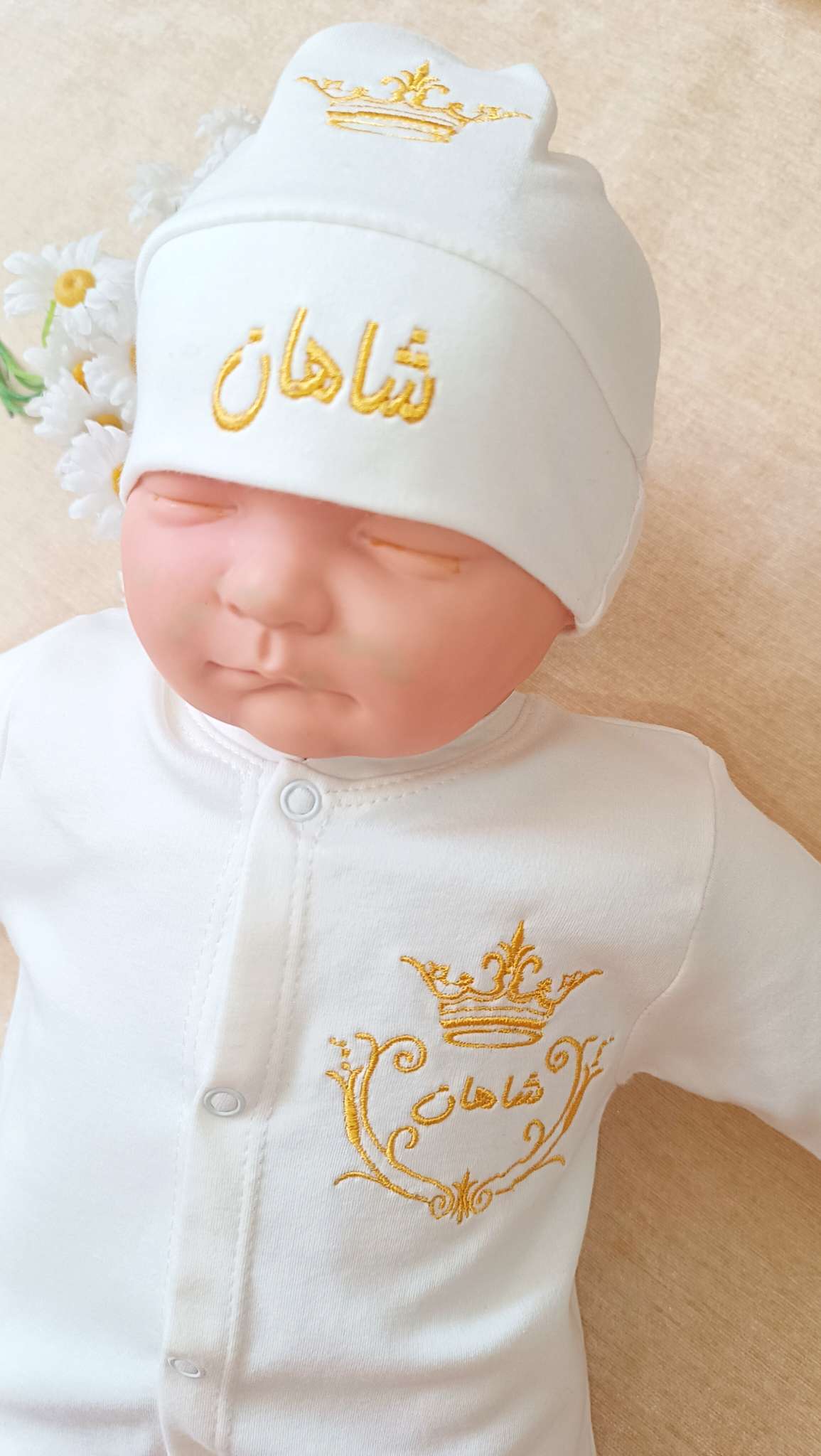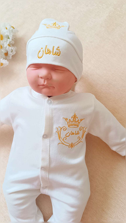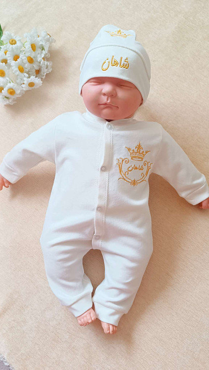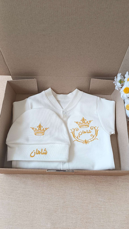 دو تکه نوزادی گلدوزی مدل تاج ۱۰۰٪ نخ پنبه درجه یک(با اقساط ۴ ماهه)
