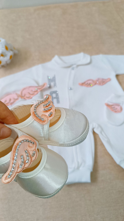 پاپوش کفشی نوزاد و کودک مدل بال فرشته نگین دار(اقساط ۴ ماهه)