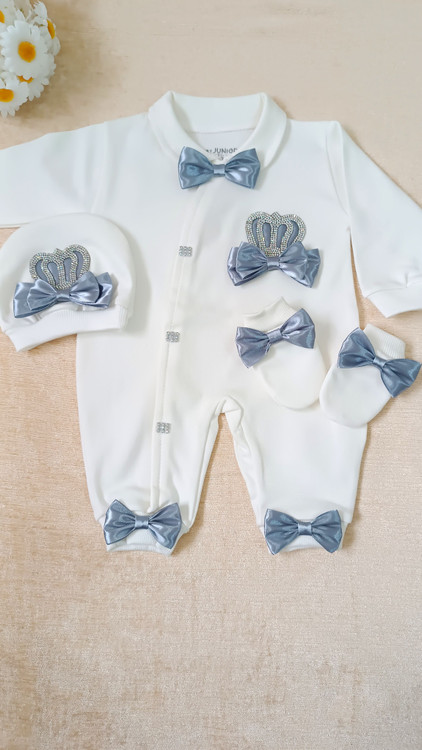 ست سه تکه نخ پنبه نوزاد و کودک مدل تاج(اقساط ۴ ماهه)