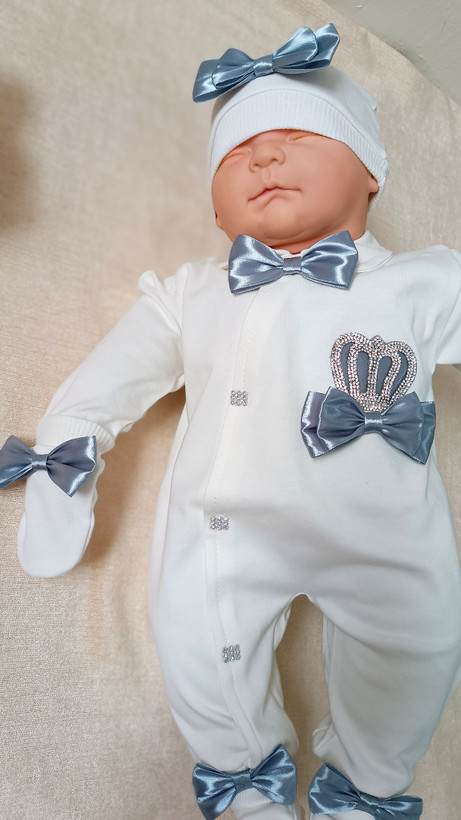 ست سه تکه نخ پنبه نوزاد و کودک مدل تاج(اقساط ۴ ماهه)