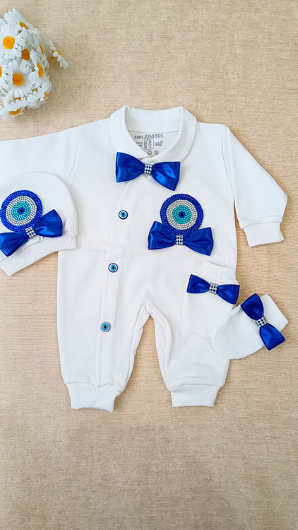 ست سه تکه نخ پنبه نوزاد و کودک مدل چشم نظر نگین پرُ(با اقساط ۴ ماهه)